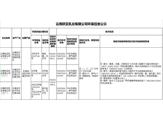 云南歐亞乳業(yè)有限公司子公司牧場(chǎng)環(huán)保信息公示